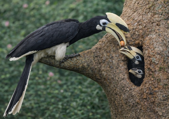 unlike almost any other bird species. During breeding season, the female hornbill enters a tree cavity